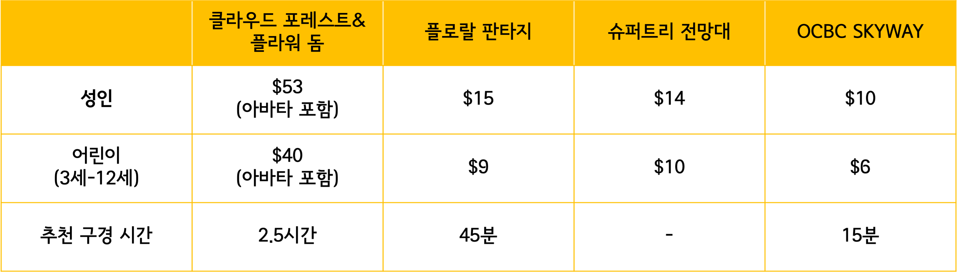 - 슈퍼트리 (무료) + 슈퍼트리 전망대 (유료) + OCBC Skyway (유료)