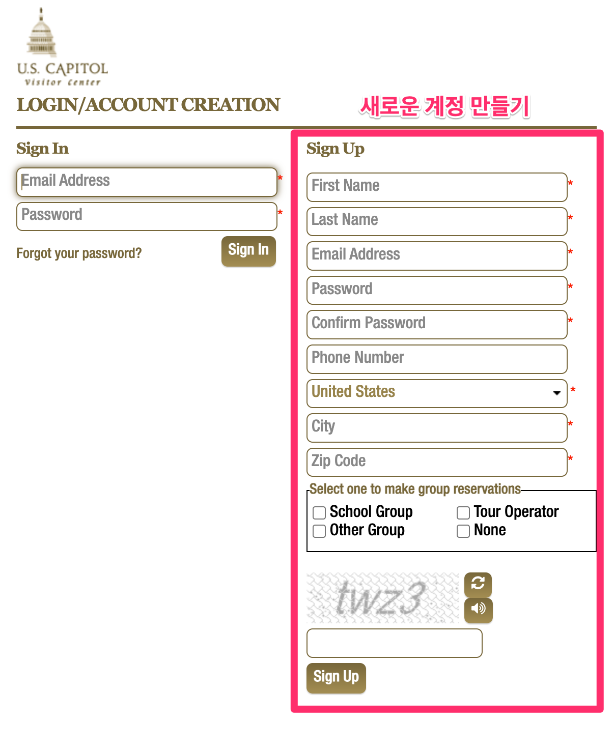 - 예약 사이트 가기: https://tours.visitthecapitol.gov