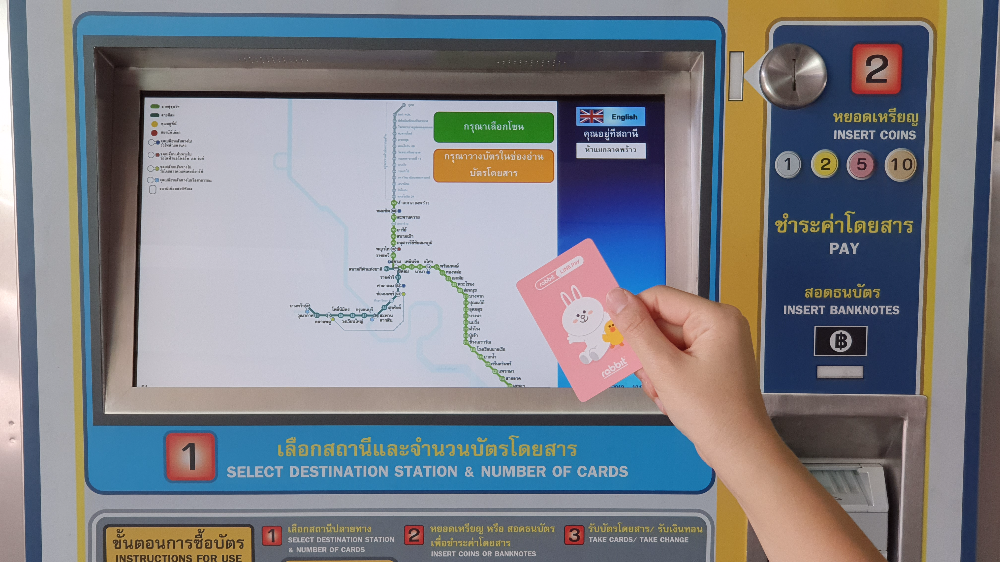래빗카드는 BTS역의 Ticket Office에서 구입할 수 있습니다. 래빗카드 구입 가격은 100밧이며, 카드 구입 후 원하는 만큼 금액을 충전할 수 있습니다. 충전할 수 있는 최소 금액은 100밧이며, 최대금액은 4,000밧입니다. 래빗카드를 구입하기 위해서는 여권을 티켓 오피스에 보여줘야 합니다.