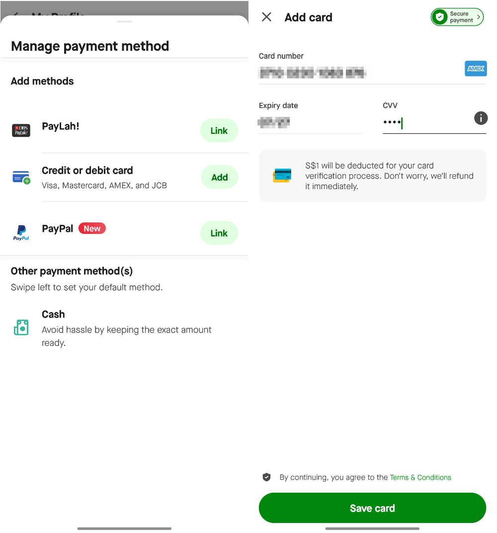 싱가포르 여행 필수앱 그랩, 고젝 한국에서 가입 및 신용카드 등록