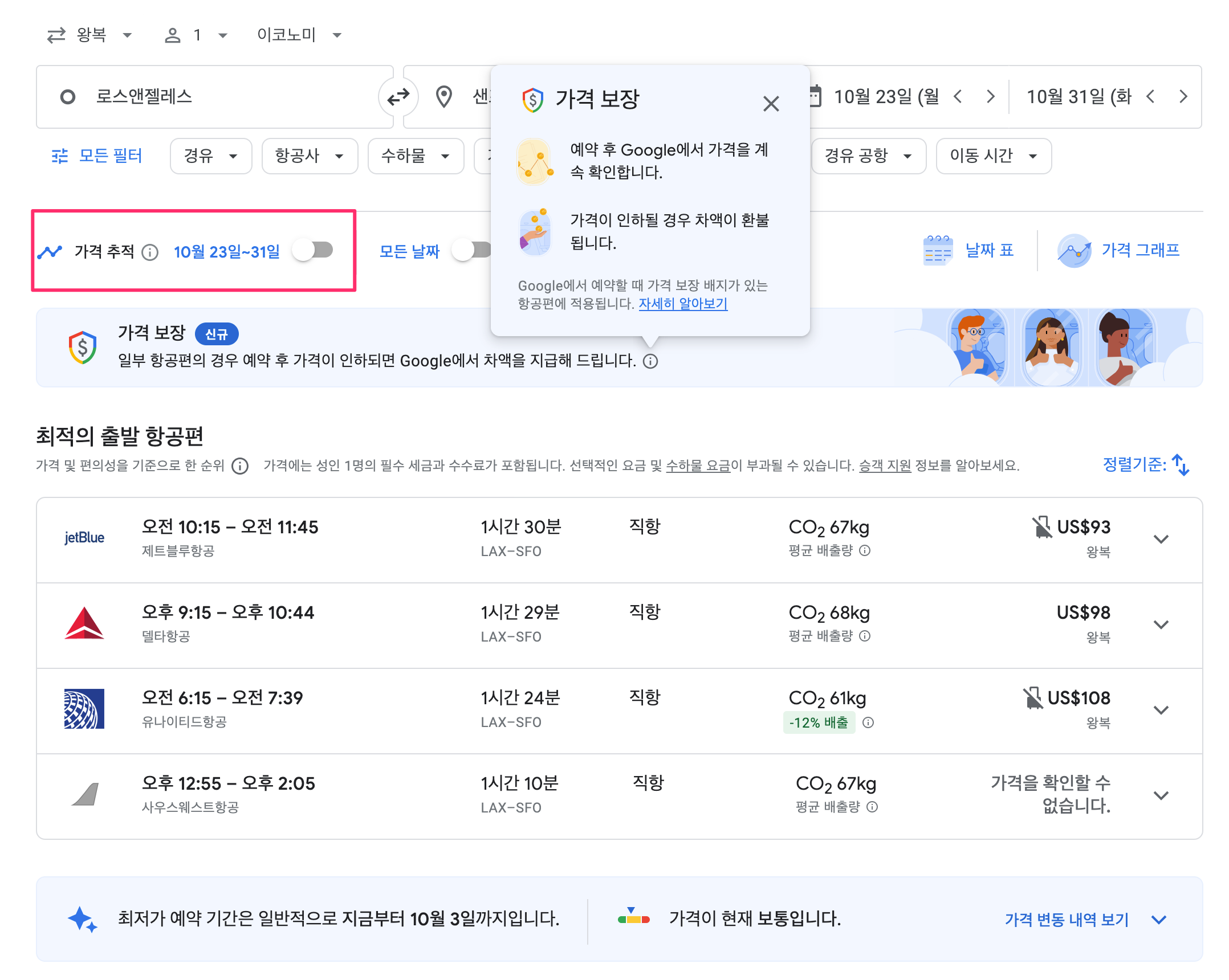 1. 구글 항공편 - 돈 아껴주는 신 기능 가격 보장 및 가격 추적