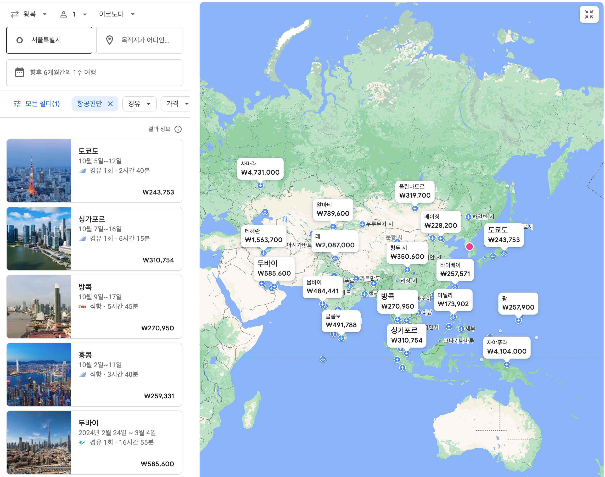 - 구글 항공편을 이용하여 항공권이 저렴한 여행지 고르는 방법