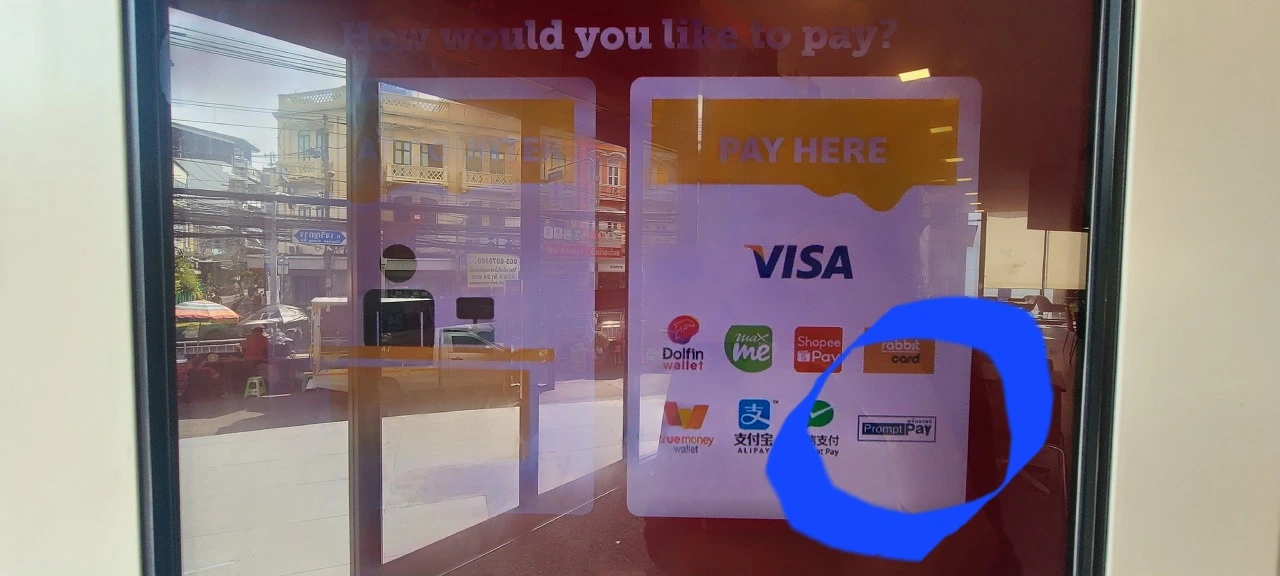 맥도날드와 같은 프랜차이즈에서 주문기계를 이용하여 결제를 할 경우 [Prompt Pay]를 선택하여 결제를 진행하면 됩니다.