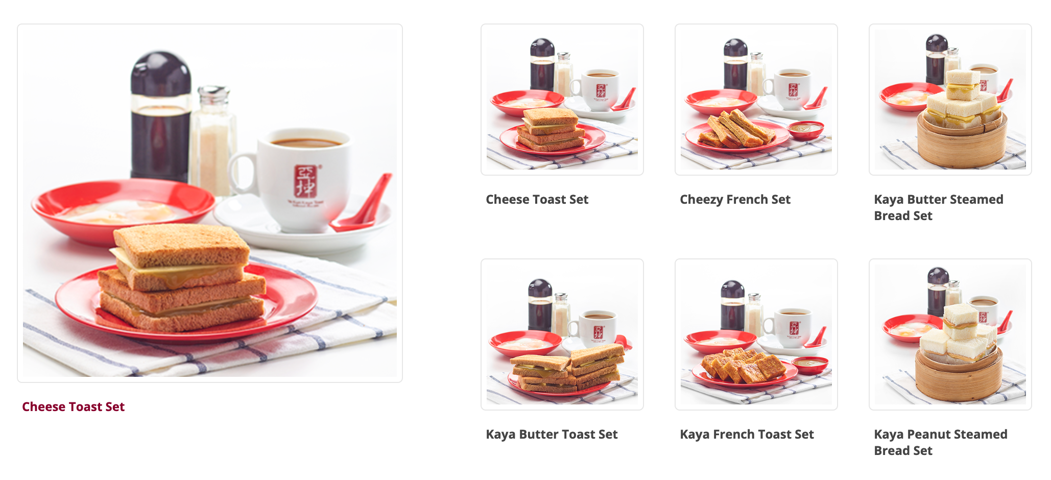 토스트 메뉴는 가장 기본이 카야쨈에 버터, 치즈, 설탕 등을 추가한 메뉴들이 있습니다. 보통 커피나 밀크티가 포함된 세트 메뉴를 많이 시켜 먹습니다. 토스트를 그냥 먹을 수도 있지만 보통의 경우 계란에 간장을 넣어 토스트를 찍어 먹습니다.