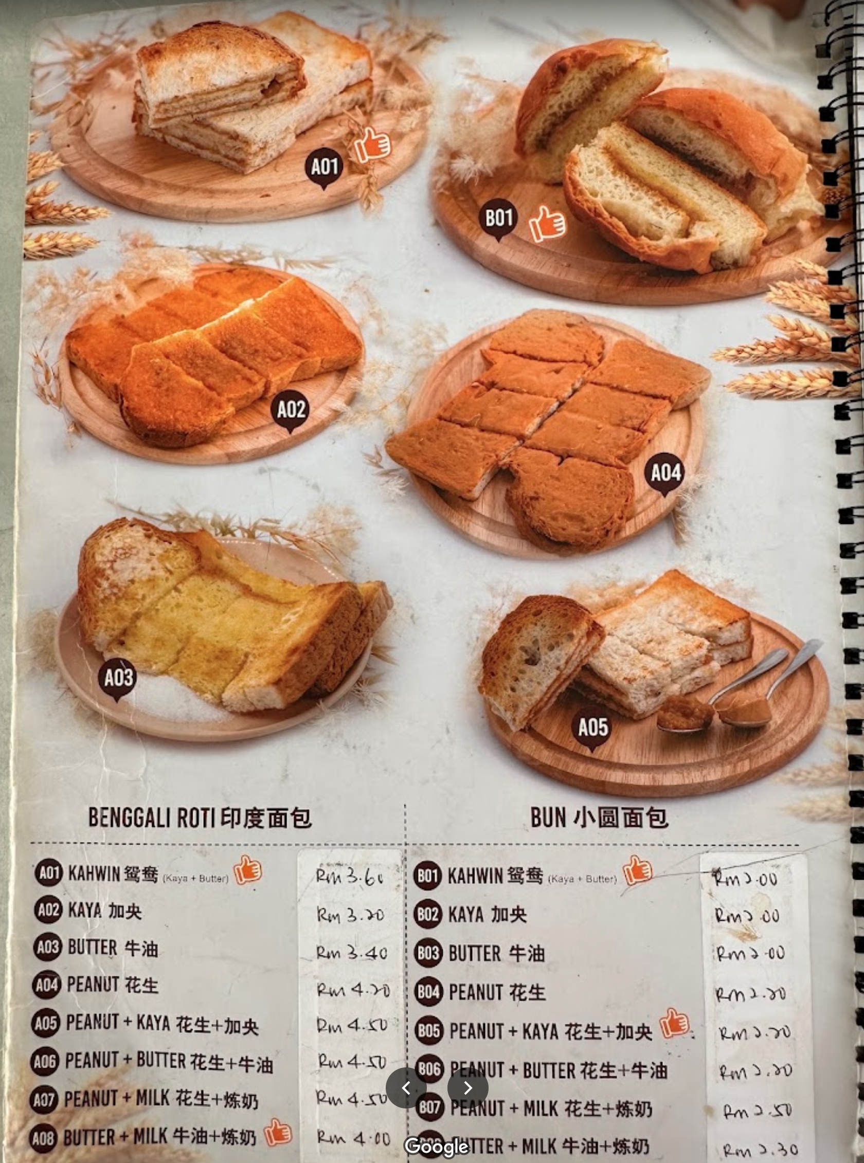 페낭의 또 다른 맛집은 카야 토스트를 파는 Al Wang Cafe입니다. 카야쨈과 버터를 발라서 만든 카야 토스트 맛집입니다. 이 집 또한 백종원의 스트리트 푸드 파이터 2에 나온 식당입니다.