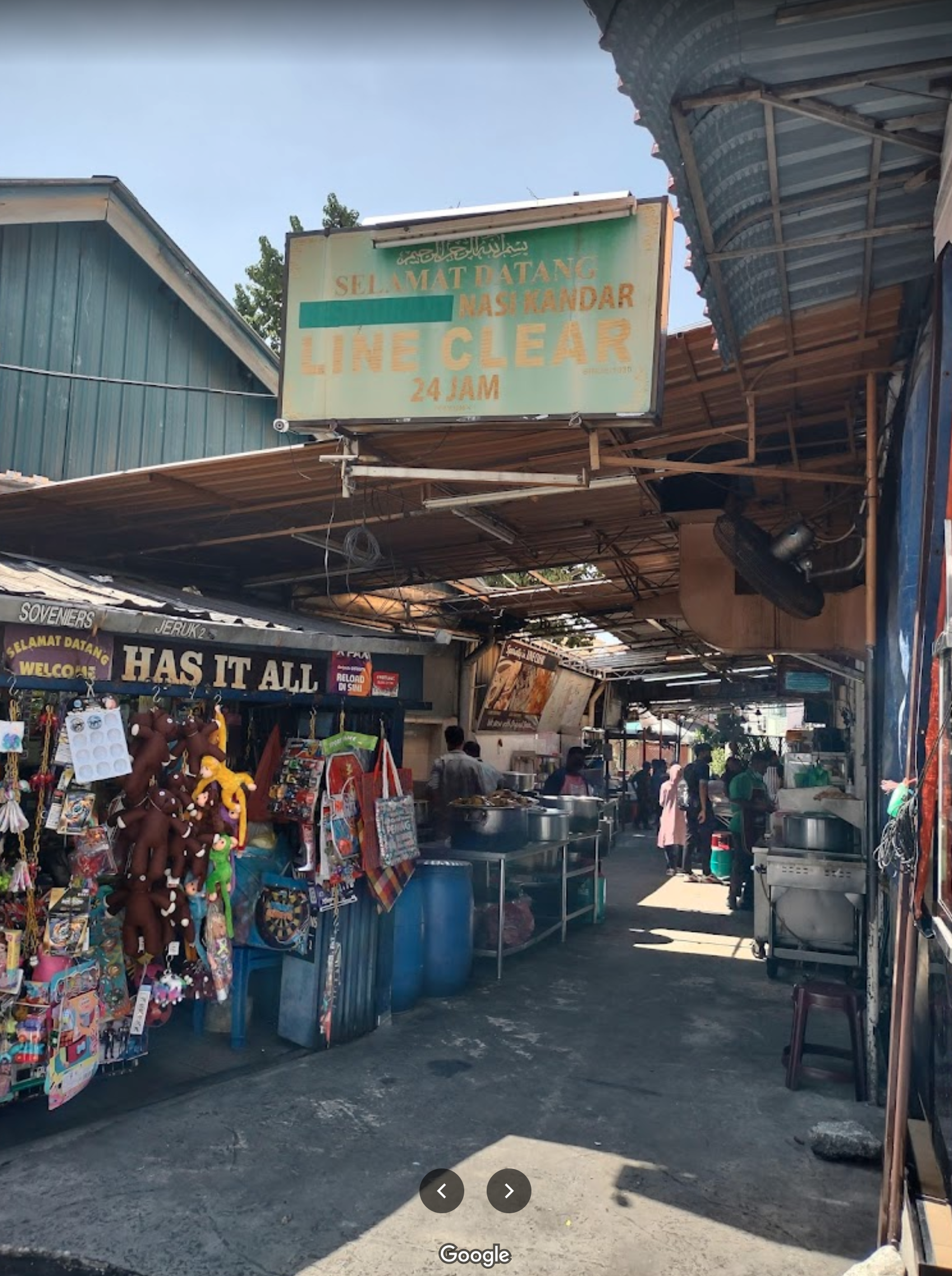 Line Clear은 백종원의 스트리트 푸드 파이터 2 페낭 편에 나온 나시 카다르 식당입니다. 골목 안쪽 깊숙이 자리 잡고 있습니다.
