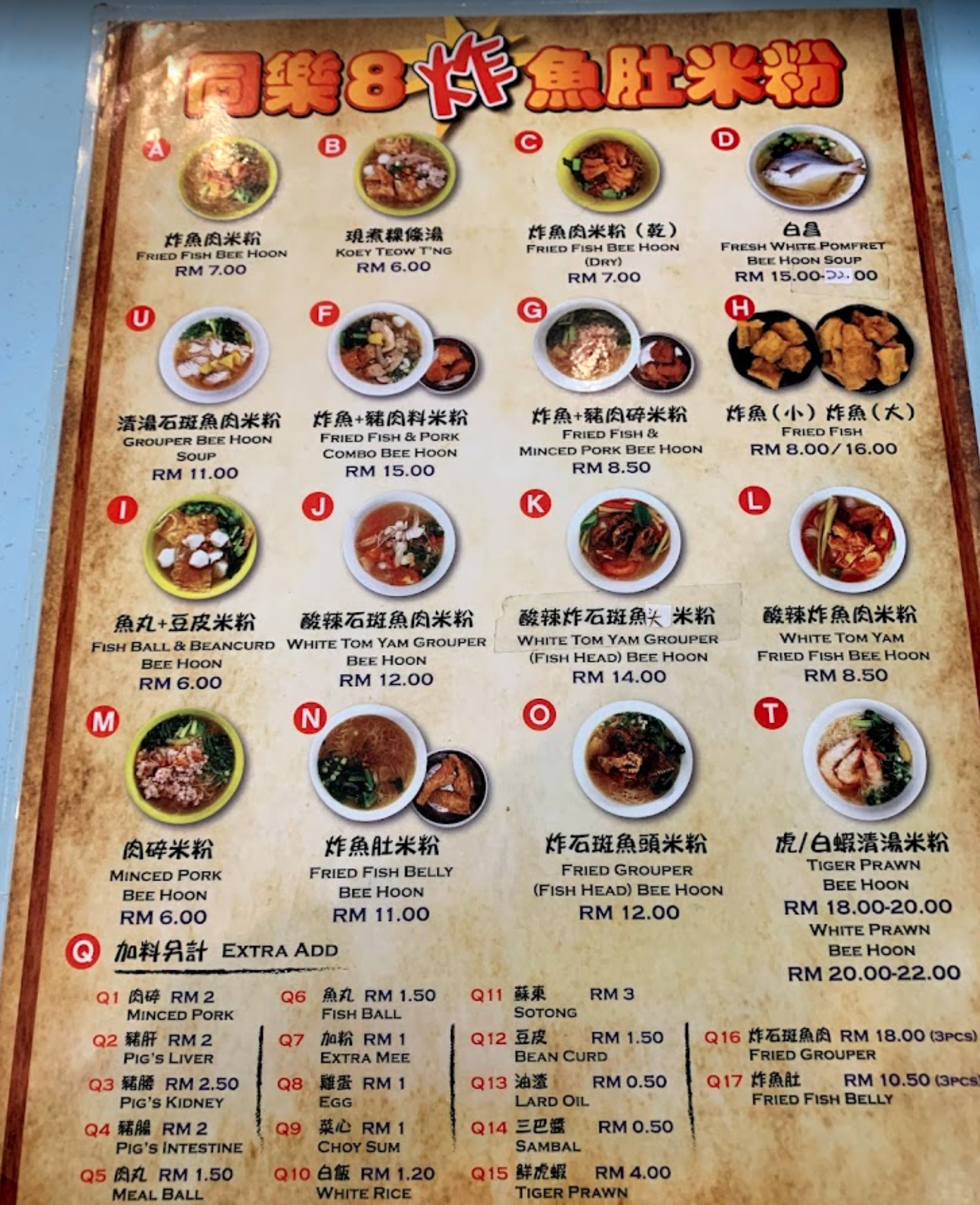 조지타운에서 구글 평점이 높은 중국 식당으로 Fried Fish Belly, Fried Fish Fillet, Vineger Pig Trotter, Mixed Pork 가 들어간 국수를 전문으로 하고 있습니다.