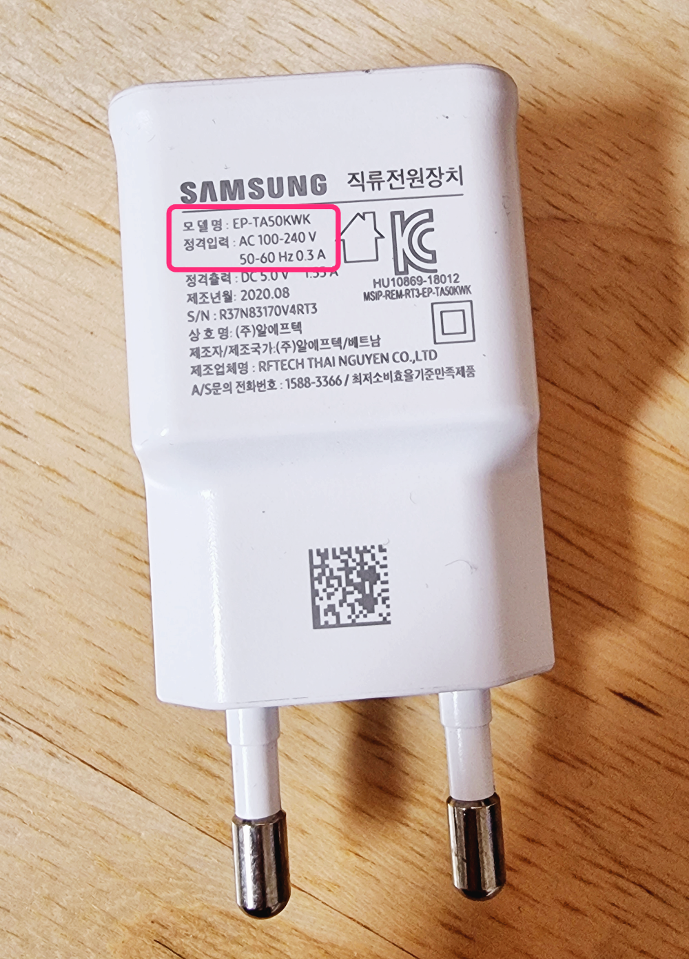 사용하는 제품을 보시면 정격입력 정보들이 표시가 되어 있습니다. 베트남 전기 규격인 220V, 50Hz를 해당 기기가 지원하고 있다면 사용할 수 있는 제품입니다. 위의 충전기에 표시된 정격입력을 보면 전압은 100~240V, 주파수는 50~60Hz라고 표시가 되어 있기 때문에 베트남에서 사용하는데 아무런 문제가 없는 제품입니다. 여행을 가기 전에 가지고 갈 제품의 정격 입력을 확인해 보시기 바랍니다.