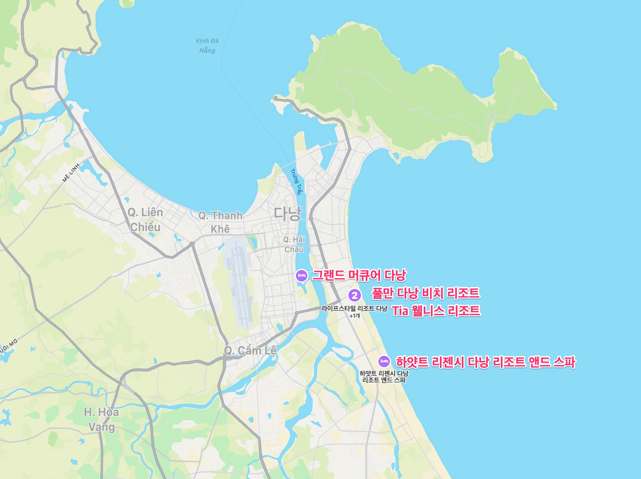 다낭은 베트남의 유명한 관광지중 하나로 매우 다양하고 많은 호텔과 리조트가 있습니다. 다낭 호텔과 리조트는 크게 3 구역으로 나눠서 생각해 볼 수 있습니다. 다낭의 중심부 근처 한 리버 근처 지역과, 미케 비치 호텔 구역, 그리고 미케비치 아래에 위치한 리조트 구역입니다.