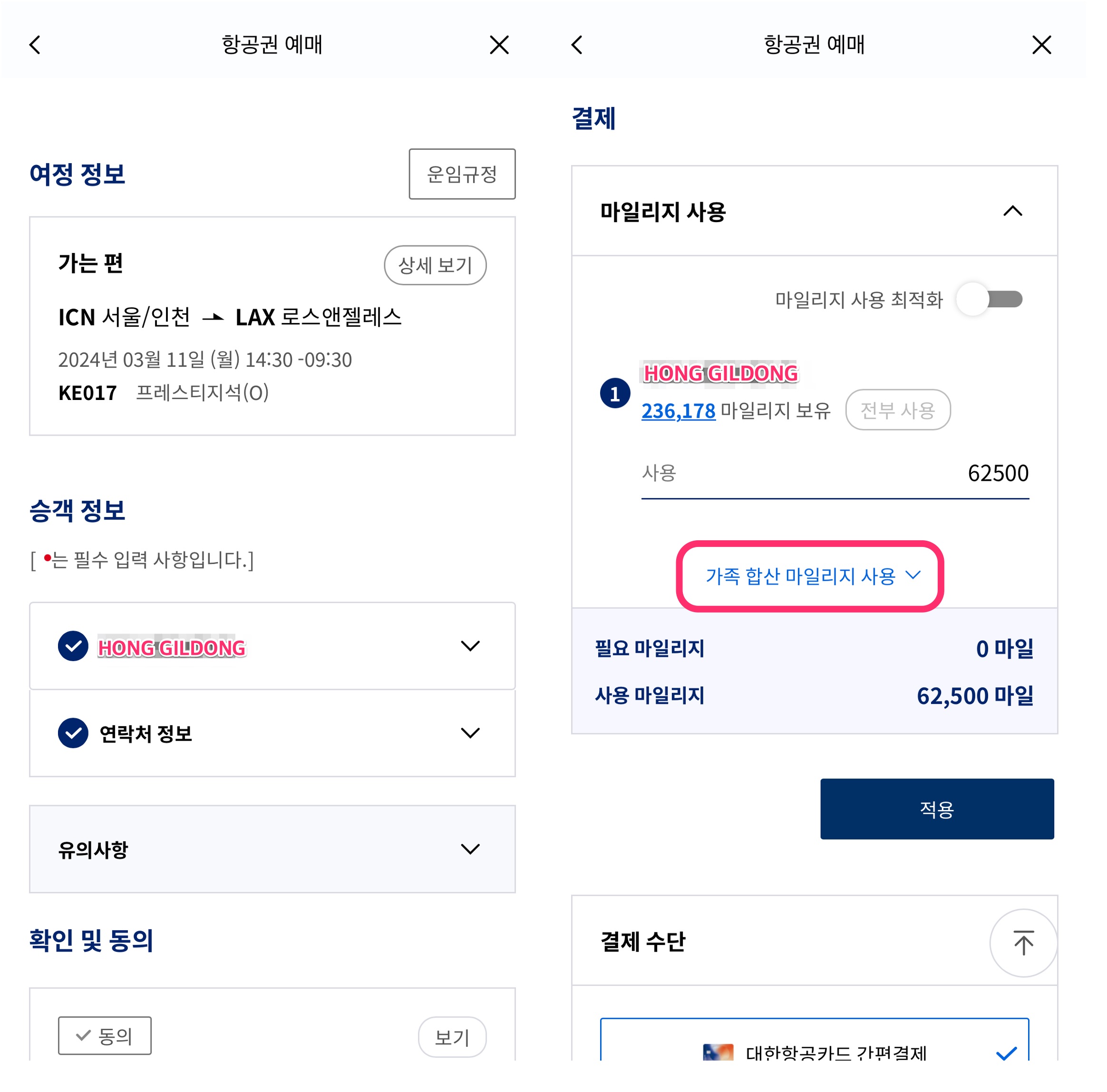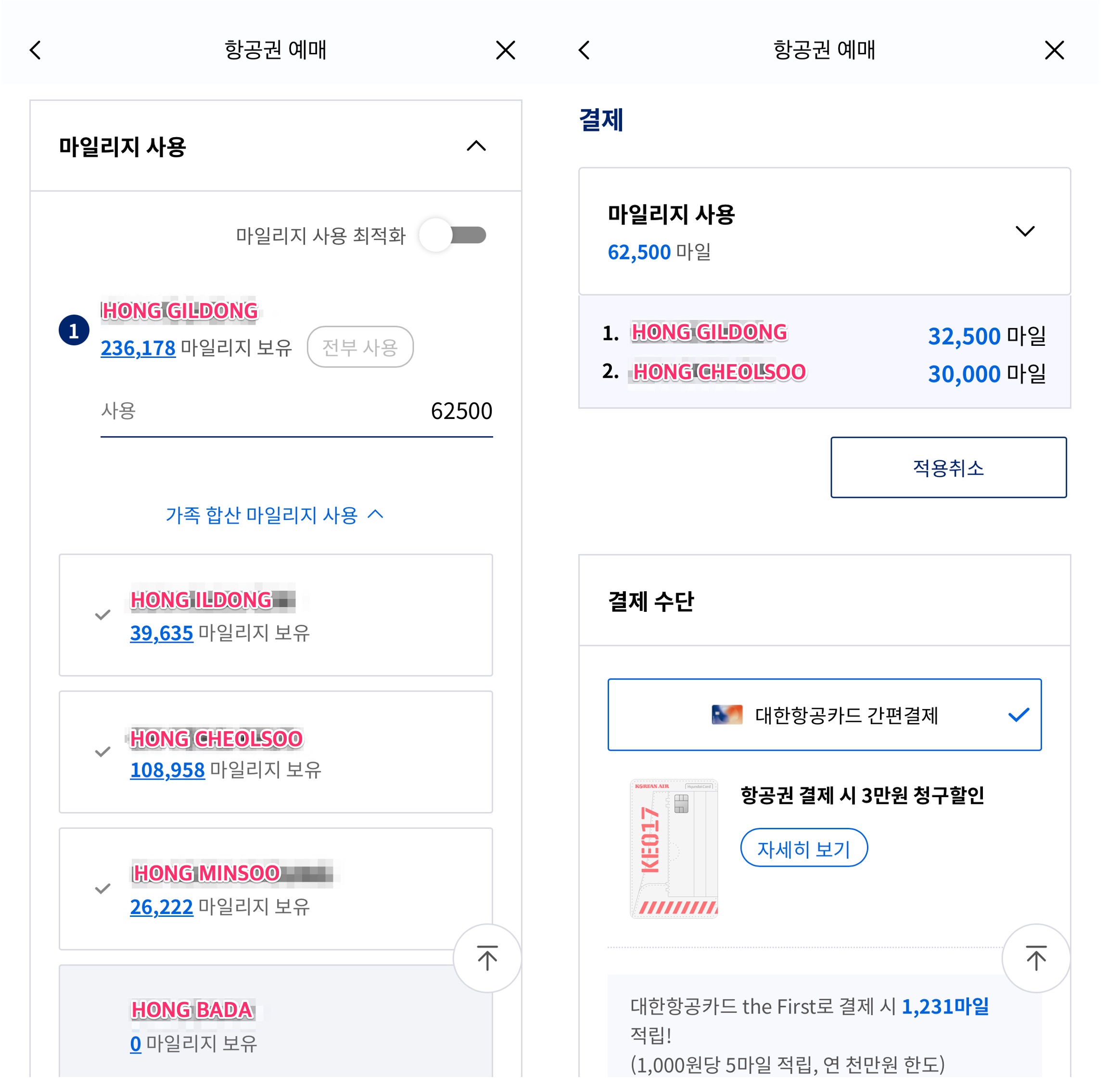 - 대한항공 가족 마일리지 합산하여 마일리지 항공권 구입하기