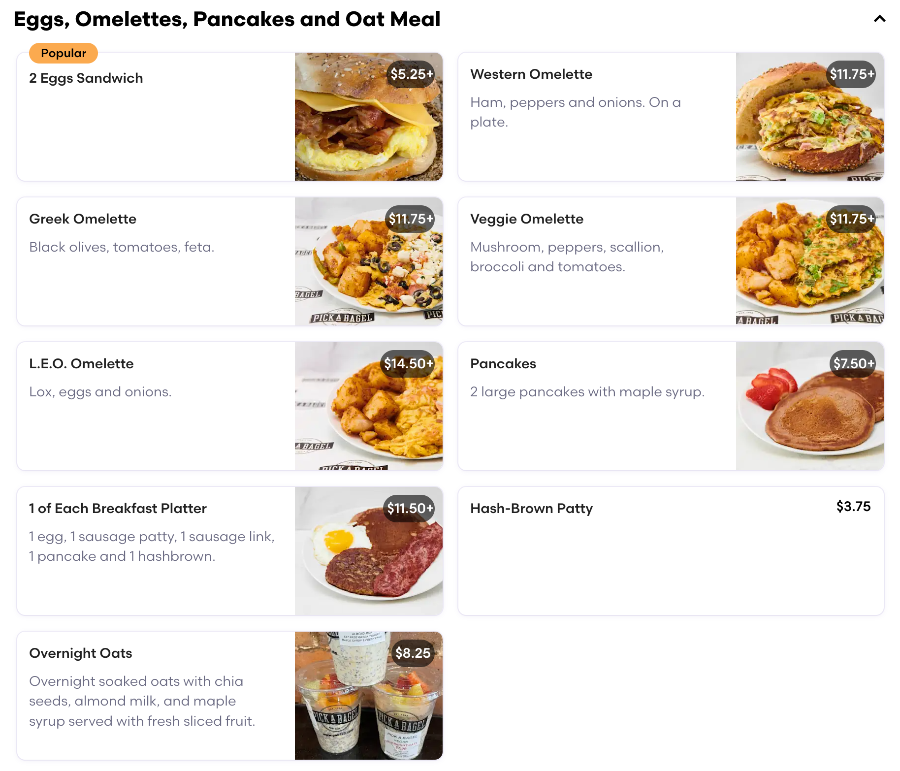 Piack A bagel 메뉴판
