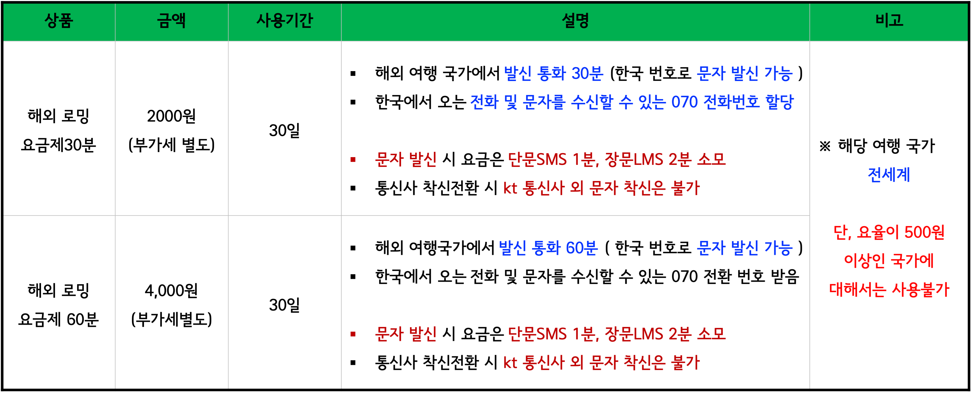 해외여행용 요금제