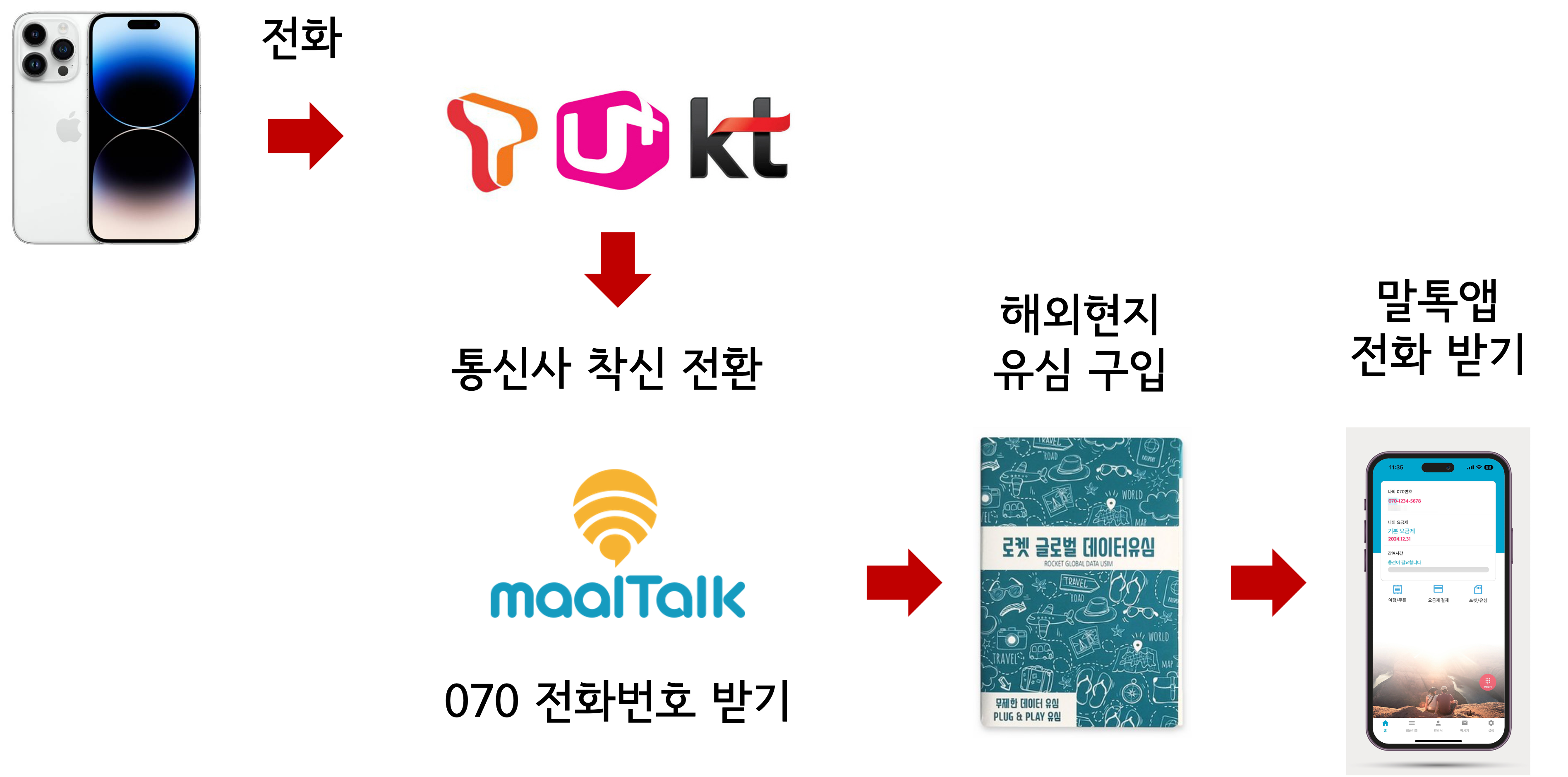 해외여행을 가게 되면 데이터 로밍 또는 현지 유심을 사용합니다. 해외 현지 유심의 경우 요금도 싸고 제공되는 데이터도 많음에도 불구하고 비싼 데이터 로밍을 사용하는 경우가 많은데요. 말톡을 이용하면 현지 유심의 장점 (가격, 데이터) 뿐만 아니라 한국 전화도 받을 수 있습니다.