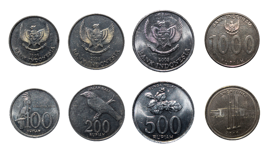 인도네시아에는 1,000, 500, 200, 100 루피아의 네 종류의 동전이 있습니다. 이 동전들은 대부분 지폐와 함께 사용됩니다. 또한, 발리 섬에서는 1,000 루피아 동전이 많이 사용됩니다.