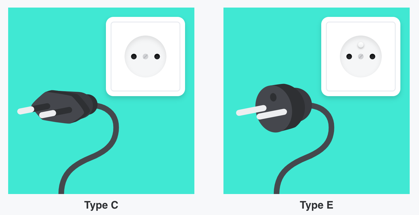 파리의 전기는 230 볼트, 50 헤르츠입니다. 프랑스의 경우 콘센트 타입이 C형과 E형입니다. 콘센트 C형은 두 개의 둥근 핀이 있는 플러그이고 E형은 두 개의 둥근 핀과 소켓의 수 접지 핀용 구멍이 있는 플러그입니다. 한국에서 사용하는 제품을 그대로 사용할 수 있습니다.