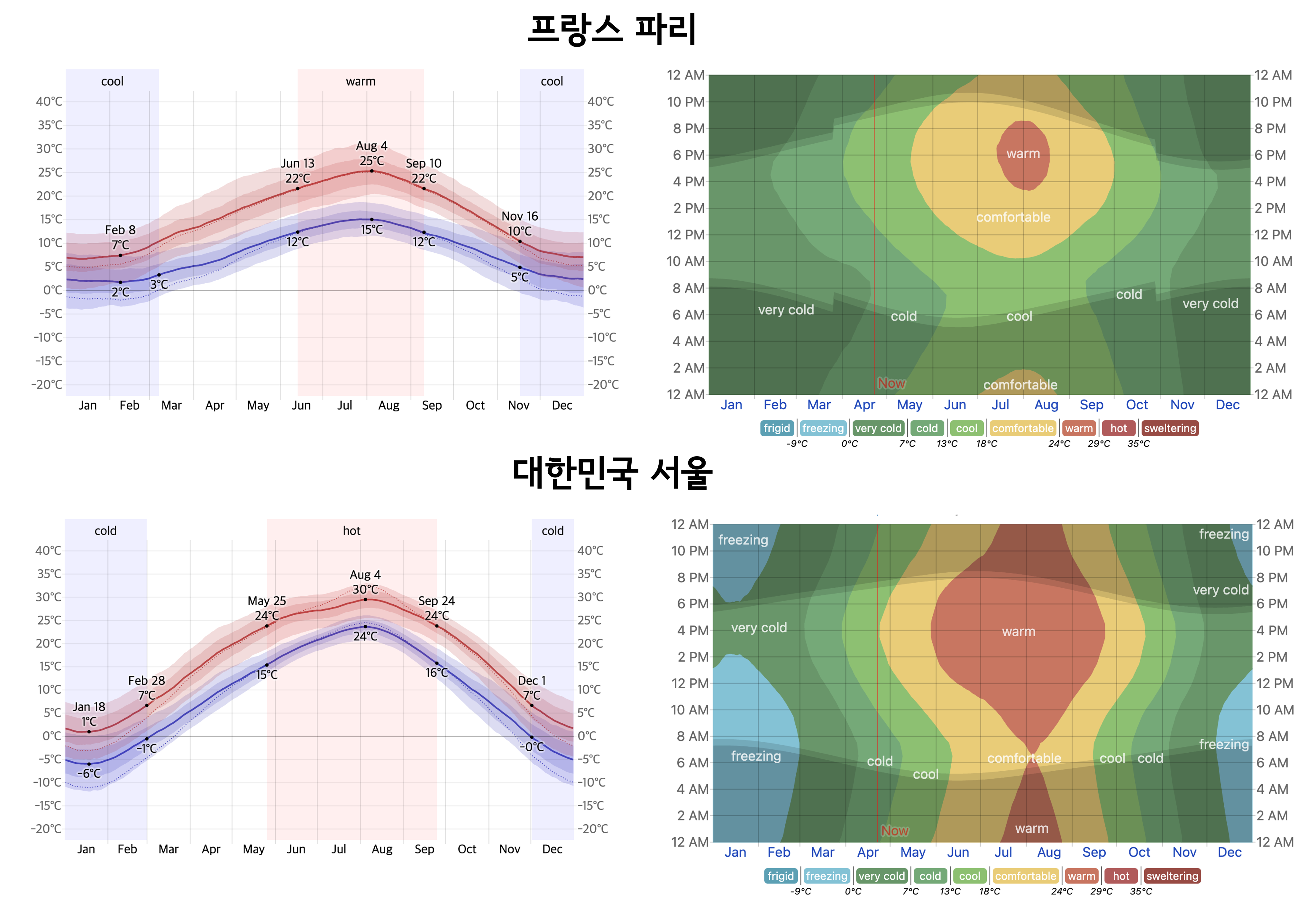 한국과 프랑스 파리 기온 비교