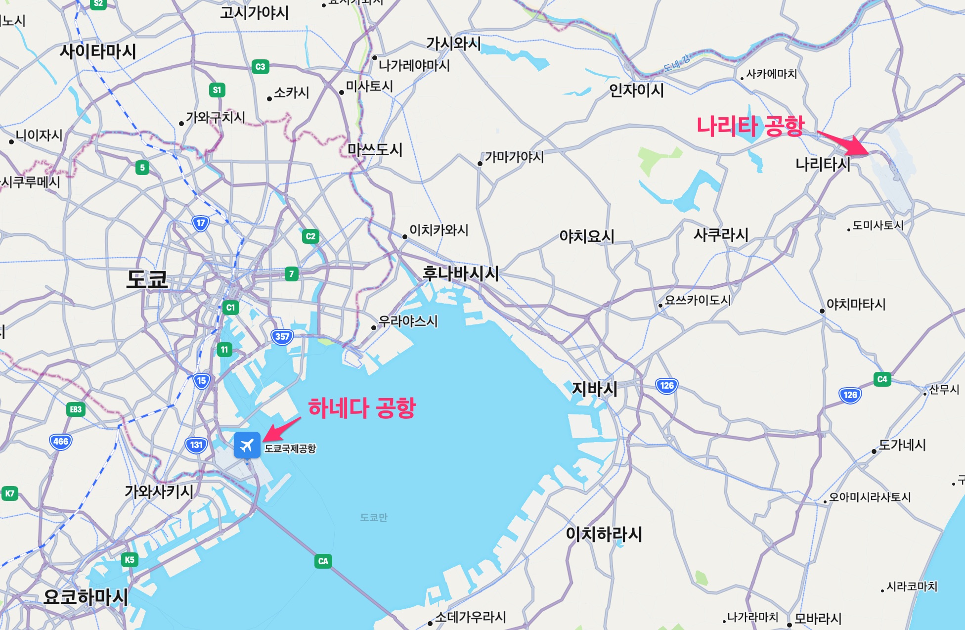 우리나라와 비슷하게 나리타 공항도 도쿄 시내에서 많이 떨어져 있기 때문에 짧은 기간동안 도쿄를 방문한다면 김포-하네다 항공 노선을 추천드립니다.